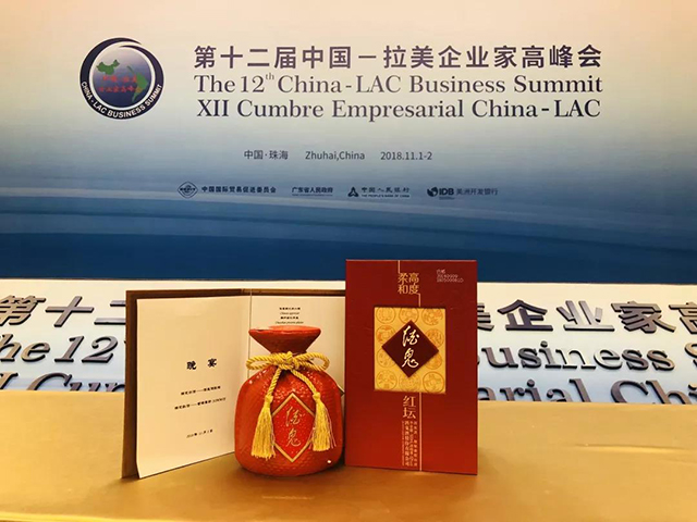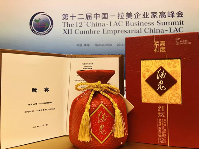 11月1日至2日,第十二屆中國—拉美企業家高峰會(簡稱“高峰會”)在“百島之市”廣東珠海舉行,雙方共1700多名來自國際組織、中國和拉美及加勒比國家政府部門、商協會及企業代表出席會議。在這一個重要場合,紅壇酒鬼酒作為宴會指定用酒,向拉美貴賓展現東方之韻,彰顯中國獨特文化內涵。